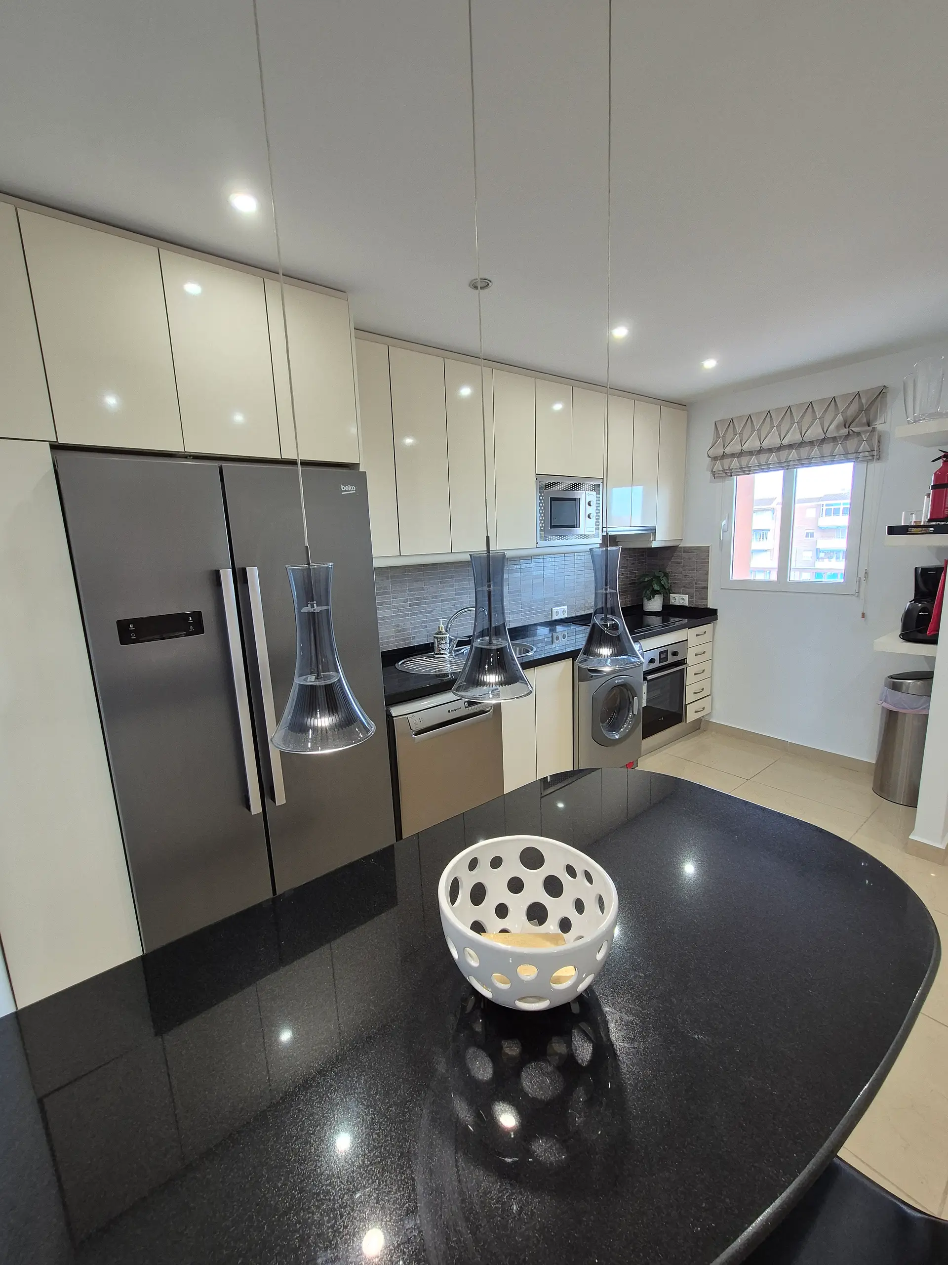 • Keittiö: Moderni ja täysin varusteltu (mm. jääkaappi-pakastin, astianpesukone, pesukone, uuni, mikro, liesi)